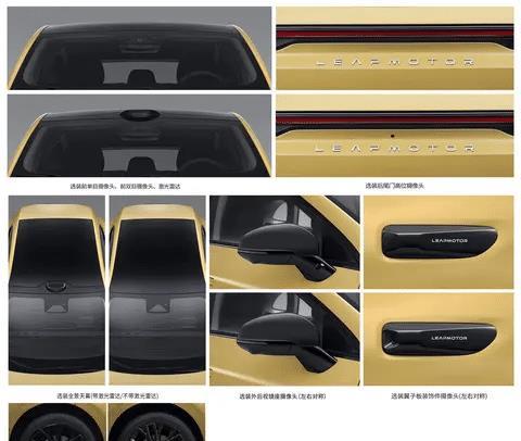 来到车身侧面,采用隐藏式门把手,黑色外后视镜壳。,车身尺寸方面,长宽高分别为4430/1880/1520mm,轴距为2735mm,搭配19英寸轮辋。车身尾部,应用贯穿式灯组,提供后扰流板,“LEAPMOTOR”标识位于尾门中央位置。非常有辨识度。