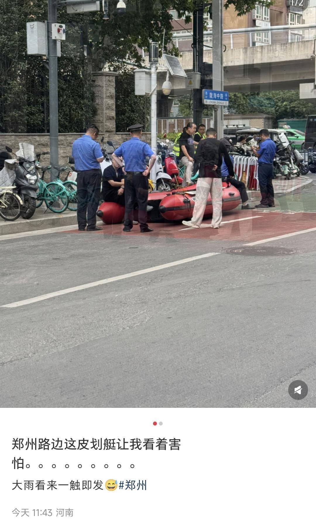 极目新闻记者注意到,多位郑州市民分享的视频显示,当地正在进行防汛相关准备工作。在京广路隧道附近的陇海中路,有工作人员在路边放置了皮划艇,地铁站附近堆上了防汛沙袋。